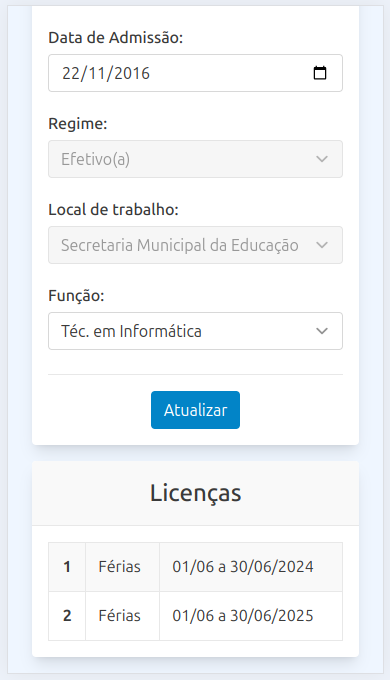 Navegue até a parte de baixo da página, local onde são listadas as férias e demais licenças: